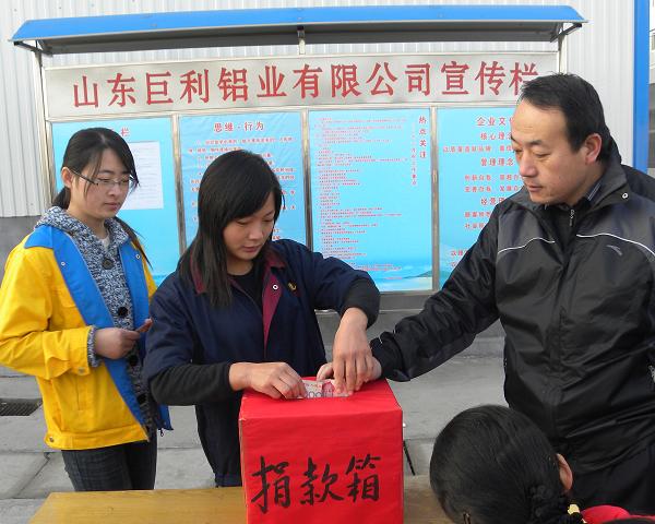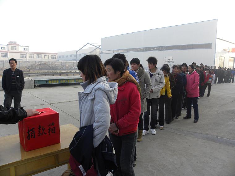 2010-11-10巨利員工林蘋不幸遇車禍?zhǔn)軅绢I(lǐng)導(dǎo)與廣大干部員工十分牽掛,11月5日自發(fā)地開展了愛心捐助活動(dòng)。當(dāng)公司領(lǐng)導(dǎo)將捐款送到林蘋家人手中時(shí),林蘋家人感動(dòng)得熱淚盈眶。第二天,林蘋的哥哥到公司送來了錦旗和感謝信,并激動(dòng)地說:“林蘋選擇巨利工作是她的福份,巨利對(duì)林蘋的這份愛,我們?nèi)医K生難忘。